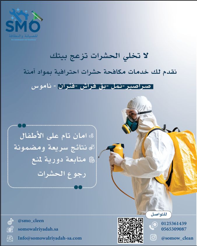 لاتخلي الحشرات تزعج بيتك نقدم لك خدمات مكافحة حشرات احترافية بمواد امنة ( صراصير - نمل - بق - فئران - ناموس ) امان تام للاطفال نتائج سريعة و مضمونة متابعة دورية لمنع رجوع الحشرات سمو تخدمكم من الاساس الى اللمسه الاخيرة 📍المنطقة الغربية ( مكة و جدة ) التواصل : 0565309087 #صيانة_نظافة_عقار_ديكور #مكة #جدة #تنظيف #سجاد_كنب_ستارة_مرتبة_تعقيم